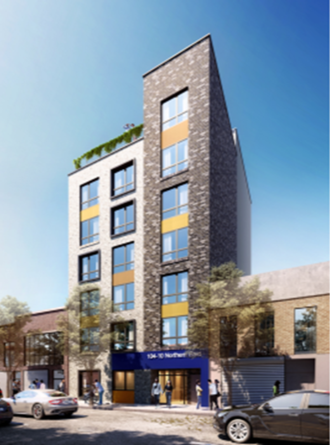 9 permanent supportive studio apartments for households at 40–60% AMI, pairing affordable housing with access to supportive services.
